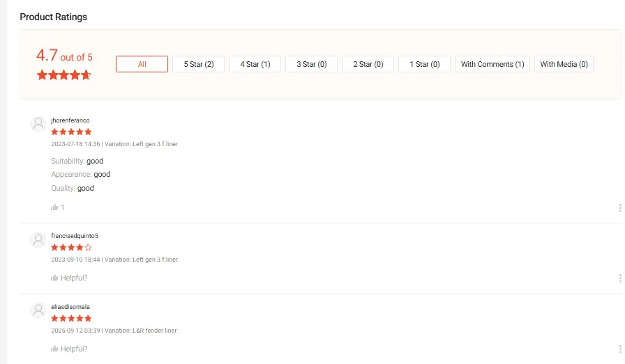 Drive with confidence knowing your car is fully shielded with high-quality fender liners designed for a perfect fit and lasting durability.